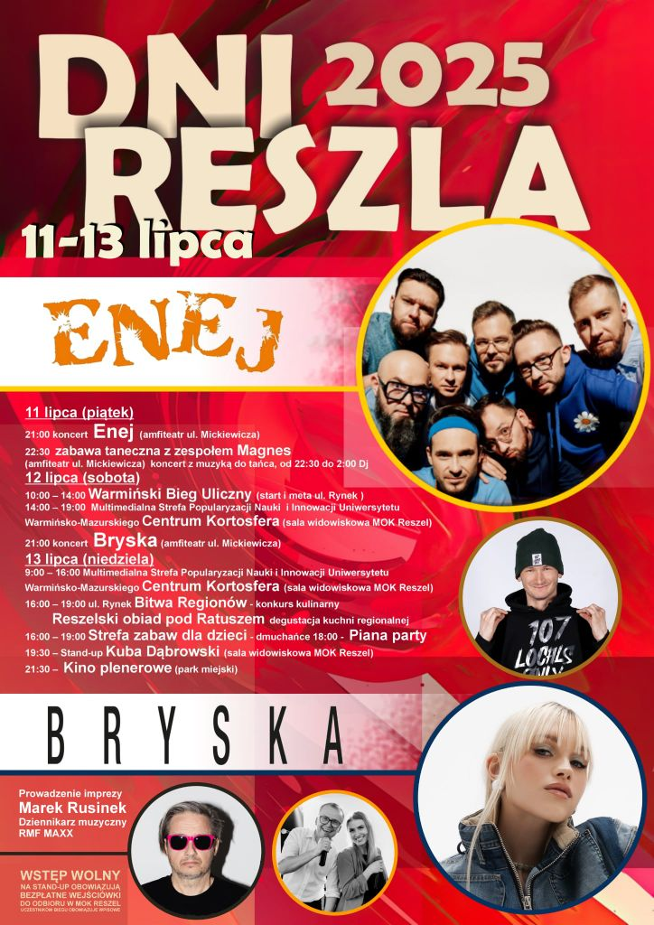 W drugi weekend lipca malowniczy Reszel stanie się kulturalnym sercem Warmii. W dniach 11–13 lipca 2025 roku odbędą się długo wyczekiwane Dni Reszla, organizowane przez Miejski Ośrodek Kultury. W programie nie zabraknie muzycznych emocji, rozrywki dla całych rodzin oraz kulinarnych uniesień. Wstęp na wszystkie wydarzenia jest bezpłatny, a atmosferę wydarzenia podkręci charyzmatyczny konferansjer – Marek Rusinek, dziennikarz muzyczny RMF MAXX.